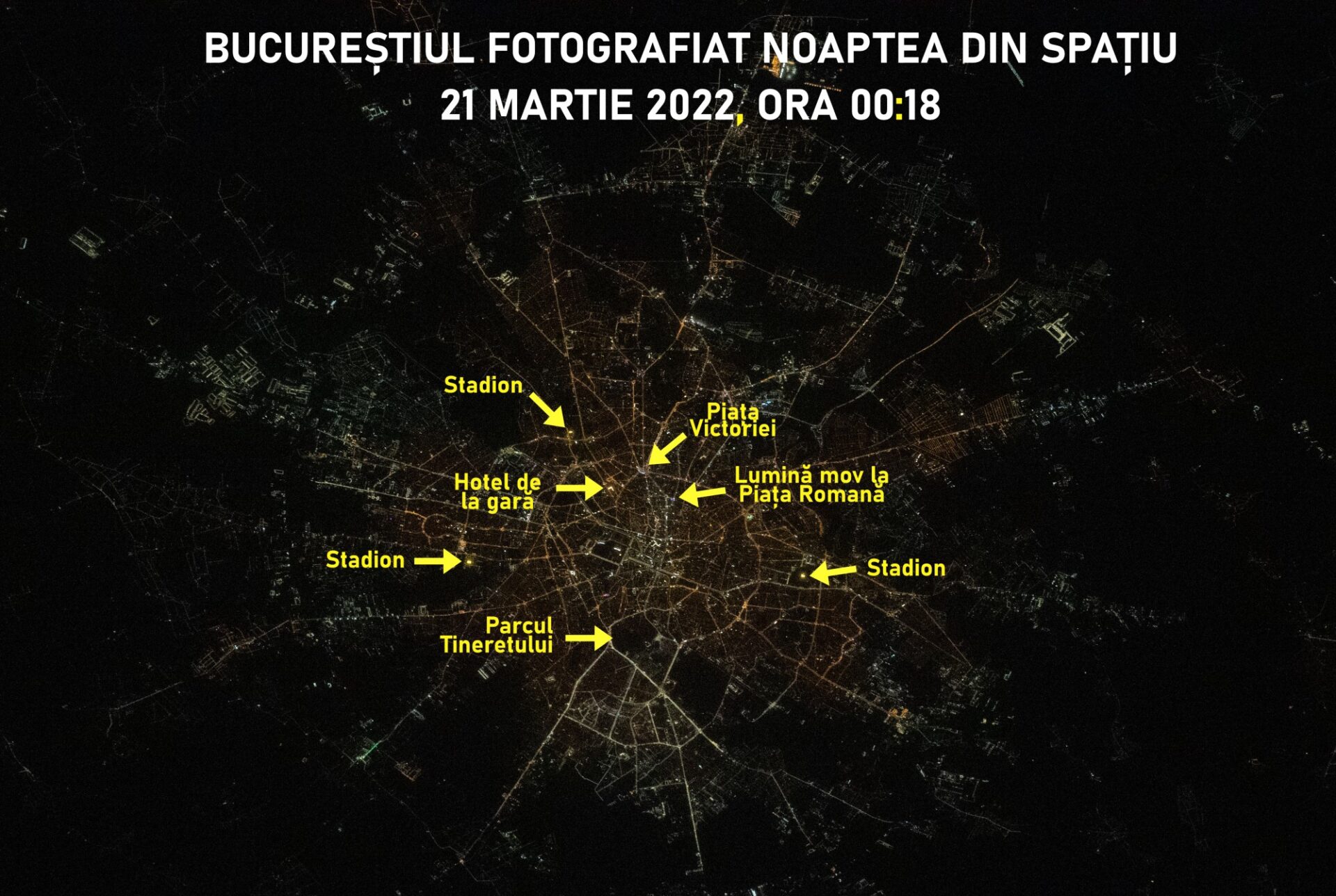 Alertă maximă: în noaptea de 21 martie 2022, la miezul nopții, Bucureștiul a fost fotografiat noaptea din spațiu. Sper că fiecare era la el acasă și nu umbla prin vecini.