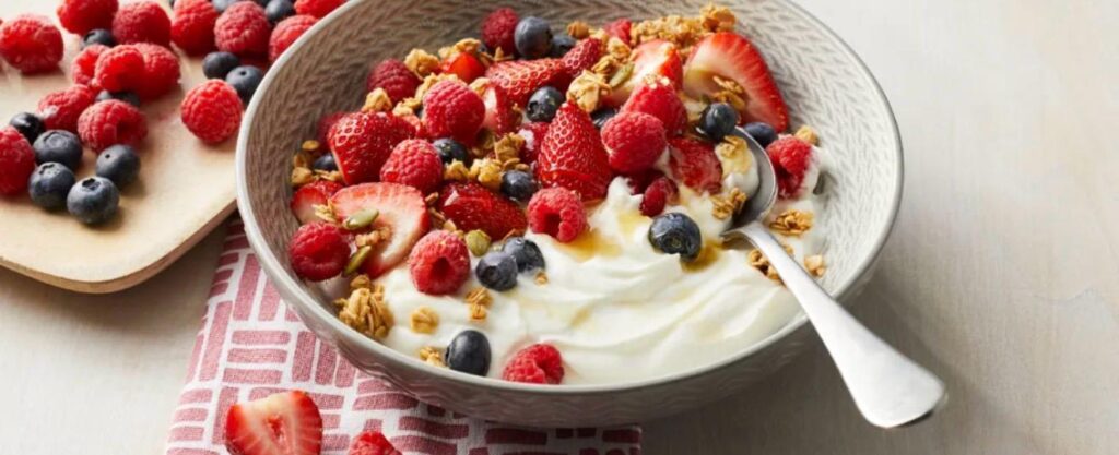 Semințele de chia conțin fibre solubile care susțin digestia și sănătatea intestinală. În combinație cu iaurt (proteine + probiotice) și fructe (vitamine + antioxidanți), obții un mic dejun echilibrat care: