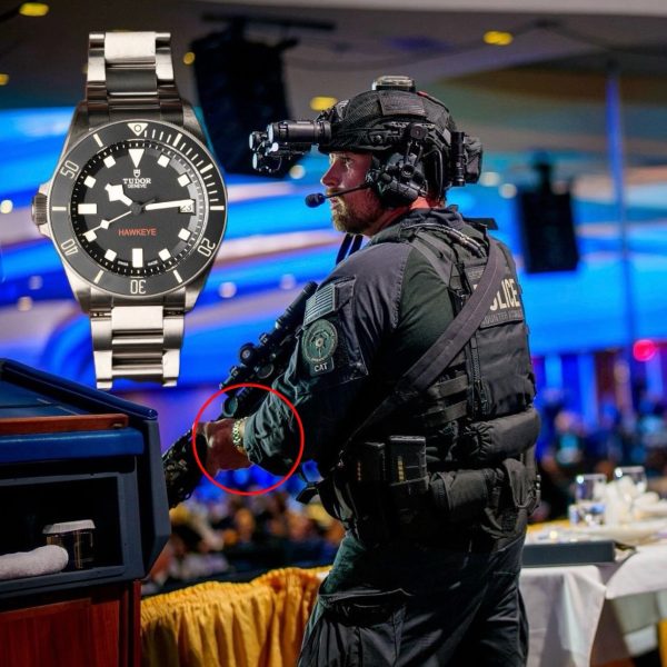 Acela este un model Tudor Pelagos LHD. În partea de jos scrie Hawkeye, numele unității Secret Service, iar pe spate are de asemenea sigla lor și whatever.