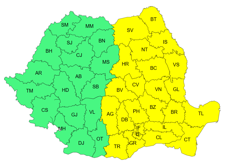 Cod Galben de ger, în toată jumătatea estică a țării, începând de sâmbătă și până miercuri. Vor fi temperaturi de până la -20 de grade Celsius, polei, ninsori și vânt.