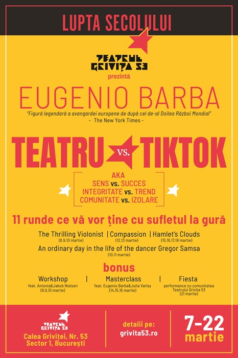 Stiripesurse.ro Comunicat de presă: Două săptămâni cu Eugenio Barba la Teatrul Grivița 53 Filme Autor: Revista Blogurilor 18/02/2026 FacebookTwitterPinterestWhatsApp Citește articolul complet Articole similare Sergiu Ardelean: De ce ne lăsăm seduși de cum bate vântul – Wuthering Heights Filme 6 ani de GeForce NOW: Styx: Blades of Greed și alte 11 titluri noi disponibile Filme Netflix prezintă trailerul oficial pentru filmul Peaky Blinders: The Immortal Man (Peaky Blinders: Bărbatul nemuritor) Filme Trust Jersey Travel Backpack – “Spacious, water-resistant backpack for all-day use” Filme Articolul precedentRomânia conduce clasamentul nPerf la viteza de upload în Europa de Est în 2025Articolul următorVan Gogh – picturi Articole populare ”Intelectualul” Rebengiuc ne spune cu cine să votăm? A fost chibițul lui Lasconi, apoi al lui Nicușor Nicușor Dan se duce la Washington pentru că n-avut încotro Uber reintră pe piața românească cu un serviciu pe care îl eliminase acum șase ani Dedeman cumpără Carrefour. Este o veste bună sau una proastă? Trafic îngreunat pe DN 7 Râmnicu Vâlcea – Dedulești, la Budești, după ce un TIR a derapat și a rămas blocat, din cauza zăpezii...