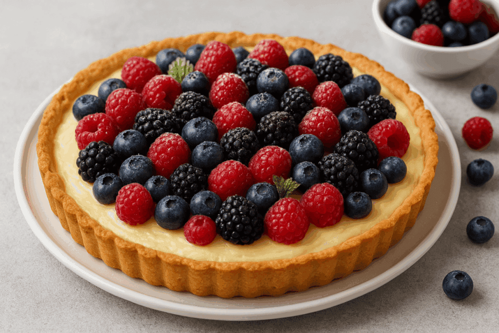Desert rafinat: Tartă cu cremă de vanilie și fructe de pădure