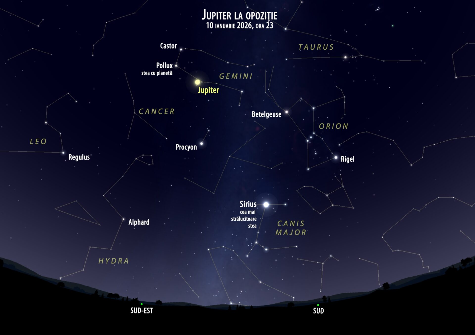 Pe 10 ianuarie 2026 planeta Jupiter se află la cea mai mică distanță de noi și în cea mai bună poziție pe cer pentru observații.