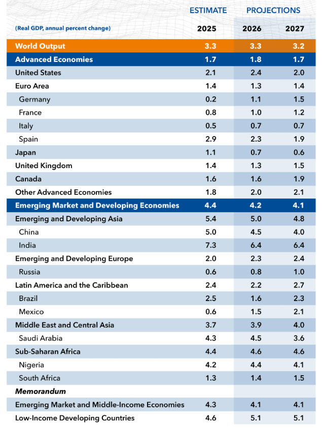 Fondul Monetar Internațional (FMI) a revizuit în sus prognoza de creștere economică globală pentru anul 2026, estimând un avans al PIB-ului mondial de 3,3%, adică cu 0,2% peste estimările din octombrie. Potrivit datelor World Economic Outlook, economia globală dă dovadă de reziliență, având în vedere că a depășit șocurile comerciale din 2025, generate de politicile tarifare ale SUA, și evoluează chiar peste nivelul anticipat anterior.