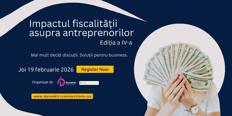 Dynamic Business Connections și Club Antreprenor organizează joi, 19 februarie 2026, evenimentul Impactul fiscalității asupra antreprenorilor, Ediția a IV-a.