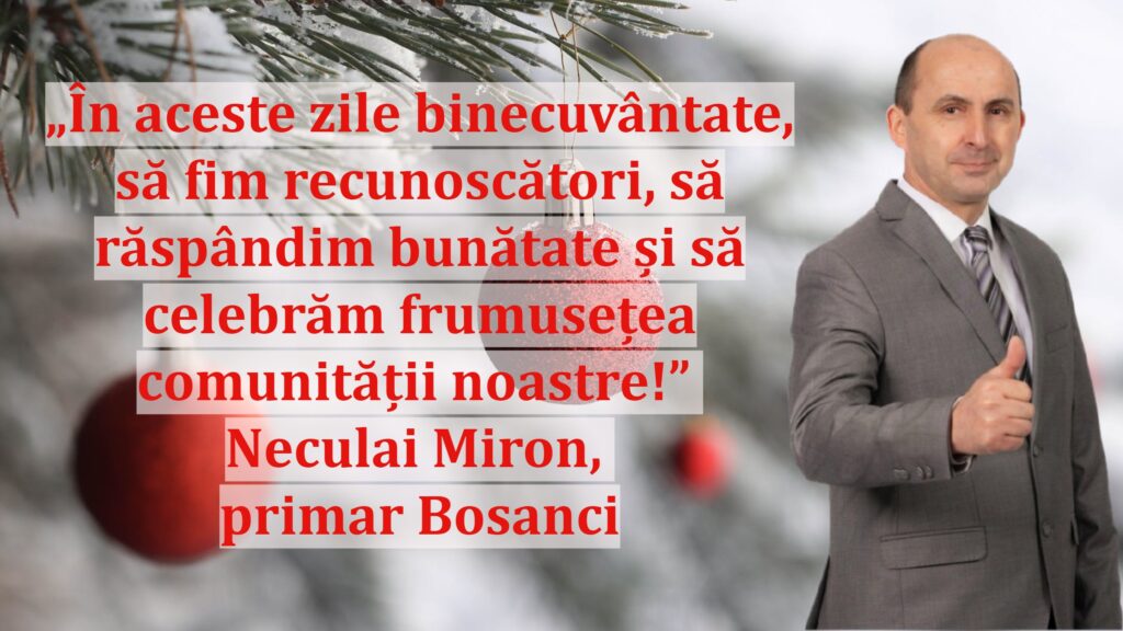 „În aceste zile binecuvântate, să fim recunoscători, să răspândim bunătate și să celebrăm frumusețea comunității noastre!” | Neculai Miron, primar Bosanci