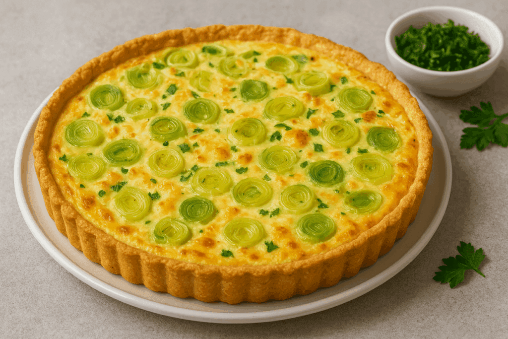 Prazul este o legumă din aceeași familie cu ceapa, dar cu un gust mai blând și mai dulceag. Deși adesea folosit în supe sau ciorbe, prazul este deosebit de versatil și poate deveni vedeta unor preparate sofisticate. Astăzi îți propunem o rețetă simplă și savuroasă: tartă cu praz și brânză. Perfectă pentru prânz, cină sau chiar un mic dejun sățios, această tartă este ușor de preparat și extrem de gustoasă.