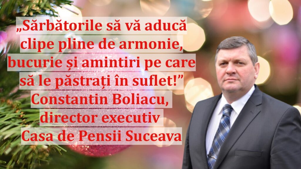 The post „Sărbătorile să vă aducă clipe pline de armonie, bucurie și amintiri pe care să le păstrați în suflet!” | Constantin Boliacu, director executiv Casa de Pensii Suceava appeared first on Glasul Sucevei.